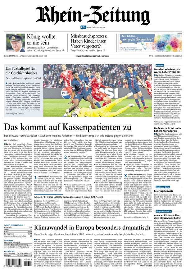 Donnerstag, 30. April 2026, Rhein-Zeitung Kreis Ahrweiler